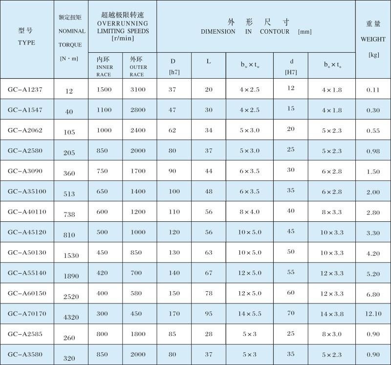 GC-A滾柱式單向離合器