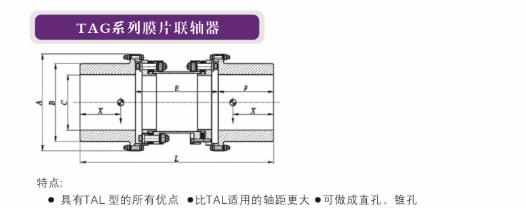 聯(lián)軸器型號 功率 / 轉速 (Kw/rpm) 公稱(chēng)扭矩 (KNm) 峰值扭矩 (KNm) *大許用轉速 (r/min) A (mm) B (mm) C(mm)max E(mm) F (mm) L(mm) TAG6115 0.072 0.68 2.4 32000 146 98 70 110 75 260 TAG6135 0.16 1.52 3.3 28000 165 119 85 110......