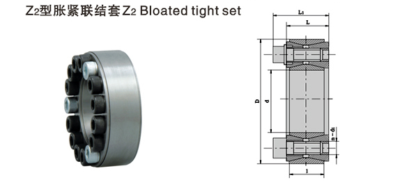 特性:Z2型脹緊套由一個(gè)開(kāi)口的雙錐內環(huán),一個(gè)開(kāi)口的雙錐外環(huán)和兩個(gè)雙錐壓緊環(huán)組成。用內六角螺栓擰緊,擰緊時(shí)彈性環(huán)沒(méi)有相對于軸轂的軸向移動(dòng),與Z1型比較,同樣壓緊力能產(chǎn)生更大的徑向壓力,傳遞更大的載荷。為便于拆卸,在一個(gè)壓緊環(huán)上有拆卸用螺孔,沿圓周共有2~4處。鎖緊聯(lián)結盤(pán)廣泛應用于包裝、印刷、紡織、機床等機械上。